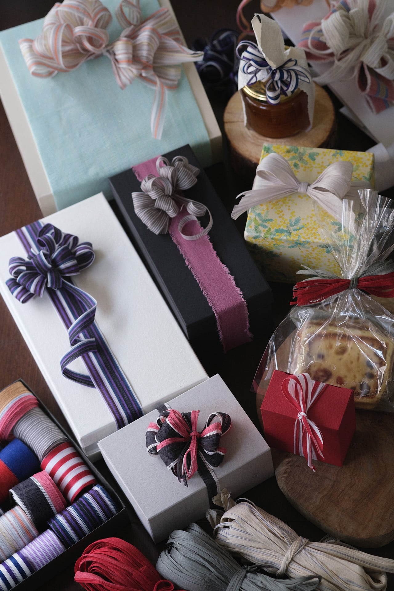 ハリのある「たて糸」だけの国産リボンは、アレンジができて、なんとも美しい。